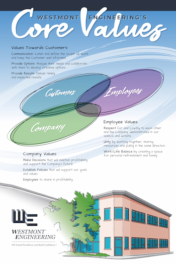 Westmont Engineering leadership believes our core values are the reason for the company’s continued success for over 85 plus years. We are dedicated to caring for our customers and helping them solve problems. We do that best by giving our employees the necessary freedom and resources to assess problems in real time on factory floors. We respect, trust, and care for our employees and that allows them to take care of our customers and deliver expected results as quickly as possible. At Westmont Engineering, we know that when our customers win, we all win!