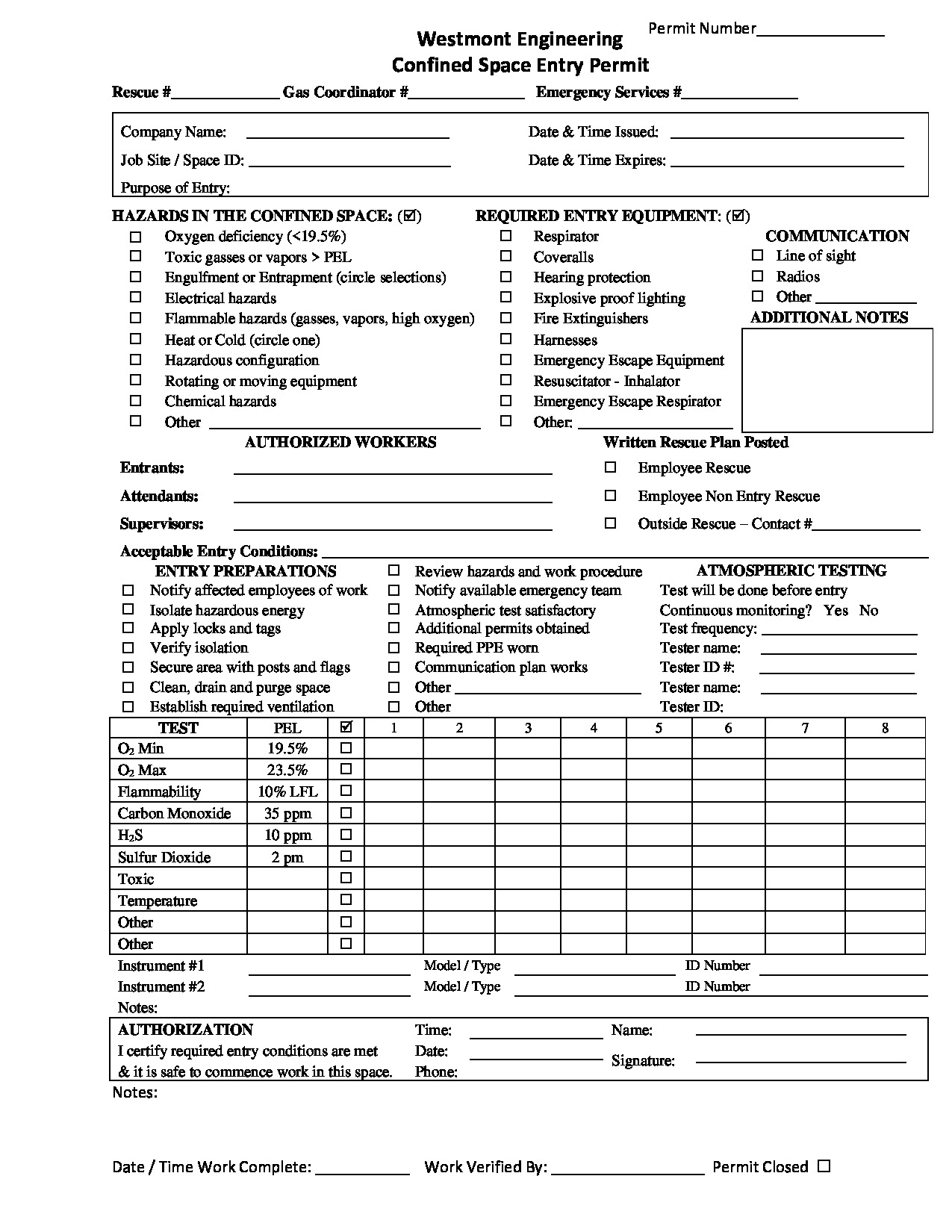 Confined Space Permit